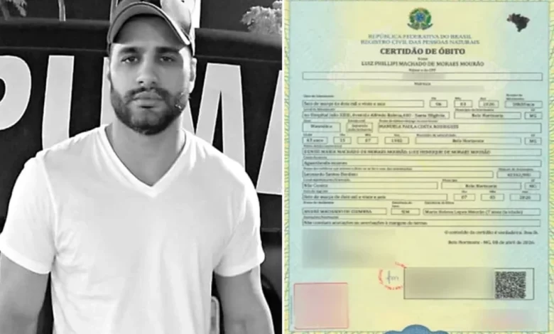 A certidão de óbito de Luiz Phillipi Machado de Moraes Mourão, conhecido como “Sicário”, chamou atenção por não apresentar a causa da morte. O documento oficial indica apenas que o motivo do falecimento está “aguardando exames”, mesmo após a divulgação de versões preliminares pelas autoridades.